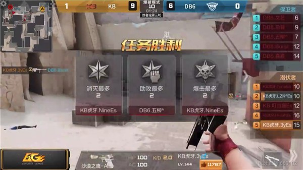 第二张地图是沙漠灰HD,这张地图是DB6一如以往的强图,然而,在这张地图上DB6率先担任潜伏者,通过多点骚扰的战术成功拿下了第一分,但是好景不长,KB随后发起反攻,上半场比分定格在5-4.下半场3y发威,一杆狙击枪让DB6寸步难行,KB越战越勇,以10-6的比分拿下了比赛的胜利!